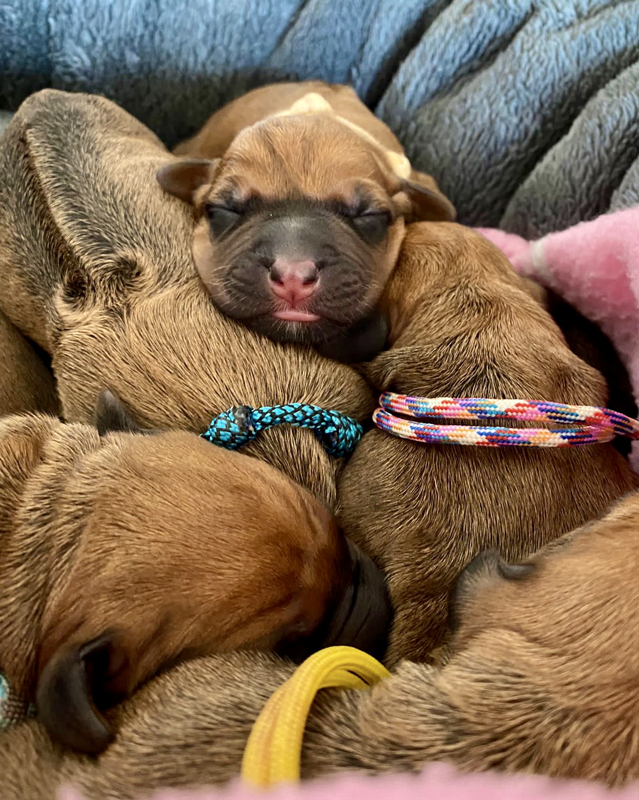 22.4.2022 se nám narodilo 10 krásných štěňátek, z toho 7 kluků a 3 holčičky. Štěňátka se mají čile k světu a maminka je v pořádku.